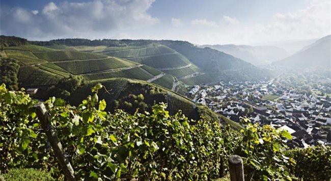 中部萊茵產區風景優美,葡萄園多分布在地勢陡峭的梯田上,種植有雷司令、米勒-圖高和黑皮諾等多種葡萄品種。這里的雷司令酒款香氣馥郁,酸度充沛,帶有迷人的礦物質氣息。