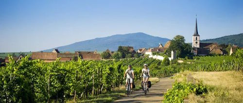 阿爾薩斯產(chǎn)區(qū)有一條100多公里的騎行線路,在這里騎行,最大的樂趣就是沿途參觀大大小小的酒莊、葡萄園。不過,由于一路上坡道與彎道較多,騎行還是有一定難度的。