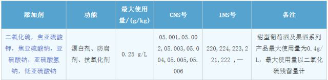 在我國,根據GB2760-2014規定,干型葡萄酒中二氧化硫及亞硫酸鹽的最大使用量不得超過250ml/L,甜葡萄酒不得超過400mg/L。