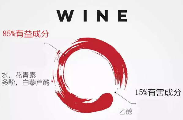 一杯酒中大部分是類似水,花青素和多酚(包括單寧和白藜蘆醇)之類,這些成分都是對(duì)身體有好處的。