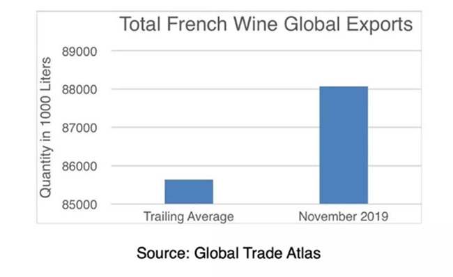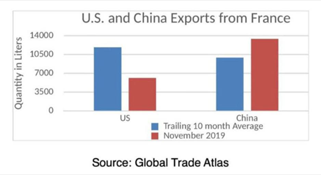 目前的關稅在迫使歐盟執行DSB(即WTO爭端解決實體)建議方面是無效的。在實施關稅的頭一個月,法國葡萄酒貿易的全球出口卻大幅增長,恰好說明了這一點。法國葡萄酒的世界買家中,就有中國的身影。