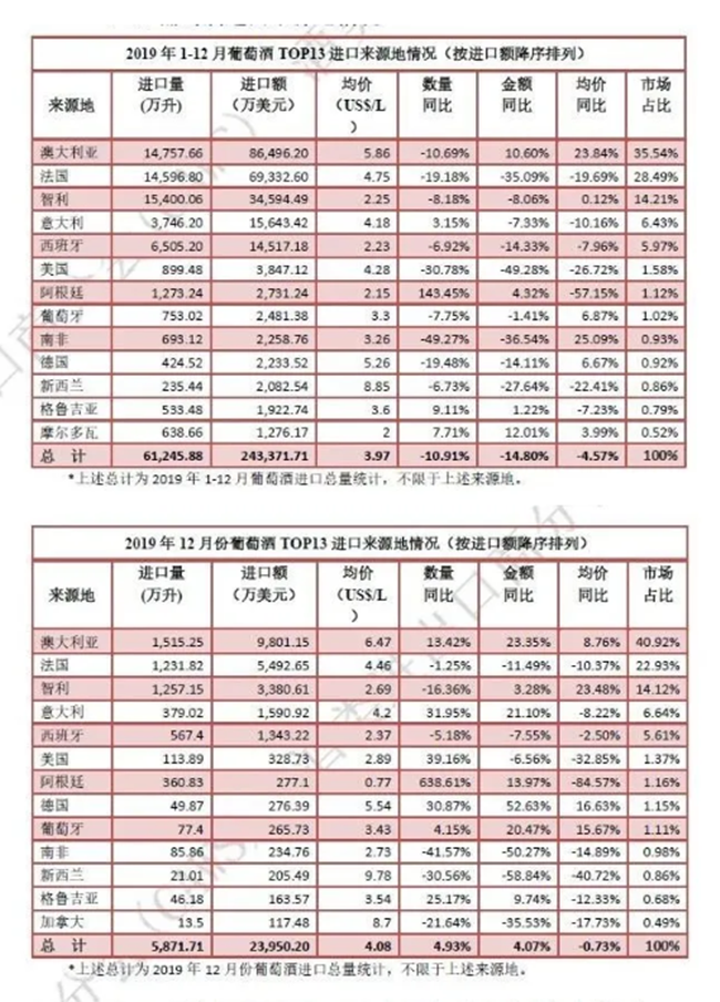 • 2019年葡萄酒進(jìn)口數(shù)據(jù)披露