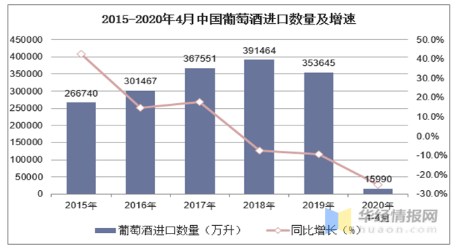 2015-2020年4月中國(guó)葡萄酒進(jìn)口數(shù)量及增速