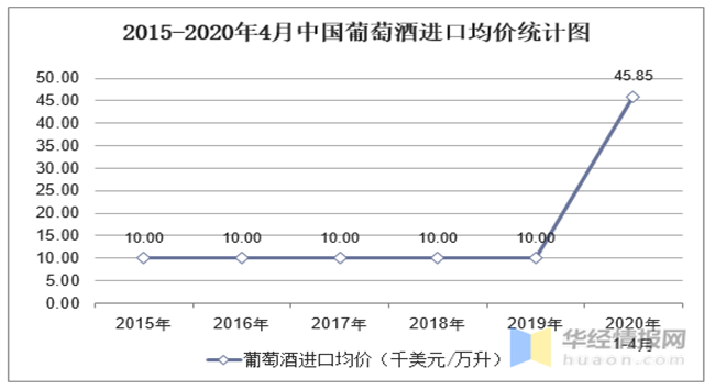 2015-2020年4月中國(guó)葡萄酒進(jìn)口均價(jià)統(tǒng)計(jì)圖