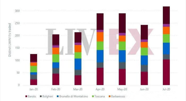 在2020年前7個月的倫敦佳釀交易所數據中,意大利精品葡萄酒的交易額上升了70%。