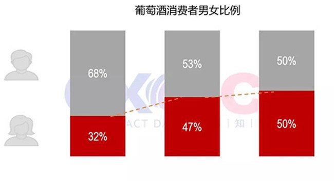 近年來,女性在葡萄酒消費者中占比逐年擴(kuò)大。有相關(guān)數(shù)據(jù)統(tǒng)計,女性消費人數(shù)正以每年22%的速度增長。跟據(jù)2017年香港貿(mào)發(fā)局對內(nèi)地葡萄酒消費者做的抽樣調(diào)查顯示,男性消費者與女性消費者占比相當(dāng),各占50%。