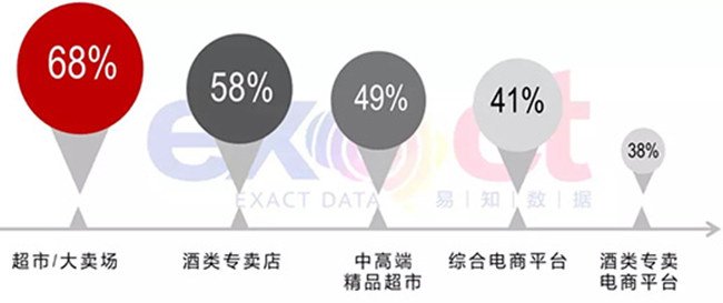 近年線上零售發(fā)展迅猛,雖然從數(shù)據(jù)來看,超市/大賣場、酒類專賣店、精品超市三種傳統(tǒng)零售渠道仍占大比重,但仍然有41%和38%的消費者選擇線上平臺。且隨著千禧一代年輕消費者崛起,線上消費的意愿會更強(qiáng)烈。
