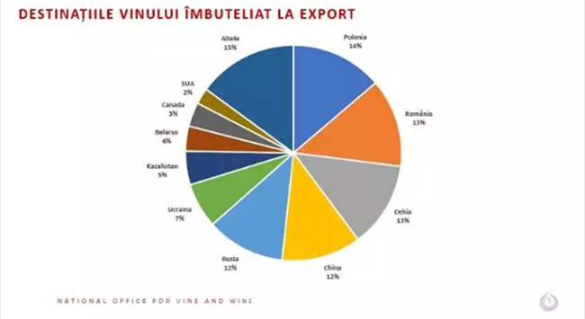 2018-2019年度,中國以12%的市場份額位居摩爾多瓦瓶裝葡萄酒第四大出口市場。此外,波蘭為14%,羅馬尼亞和捷克同為13%。