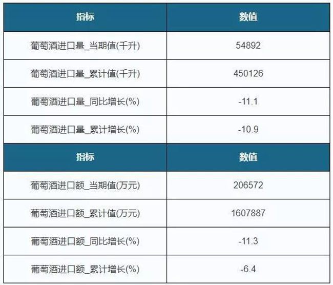 • 1-8月葡萄酒進口量下降10.9%,進口金額下降6.4%,跌幅收窄