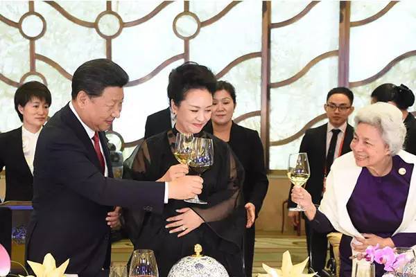 宴會上一團和氣,習大大與彭麻麻與各國的領導親切的交談,整個宴會廳都呈現出一派其樂融融的氣氛。