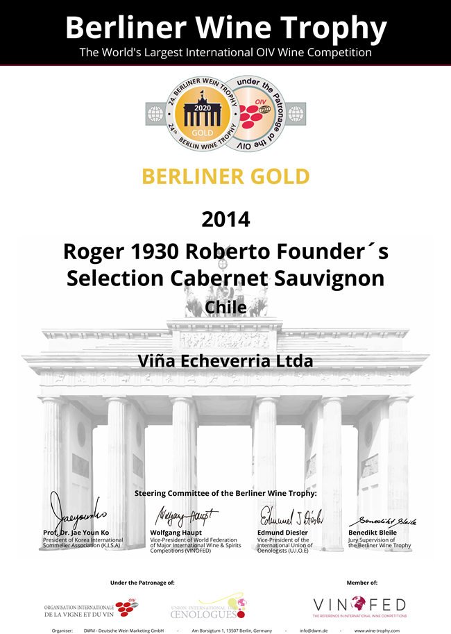 (羅吉爾1930-羅伯特——2020柏林葡萄酒大獎(jiǎng)賽金獎(jiǎng) 榮譽(yù)證書)