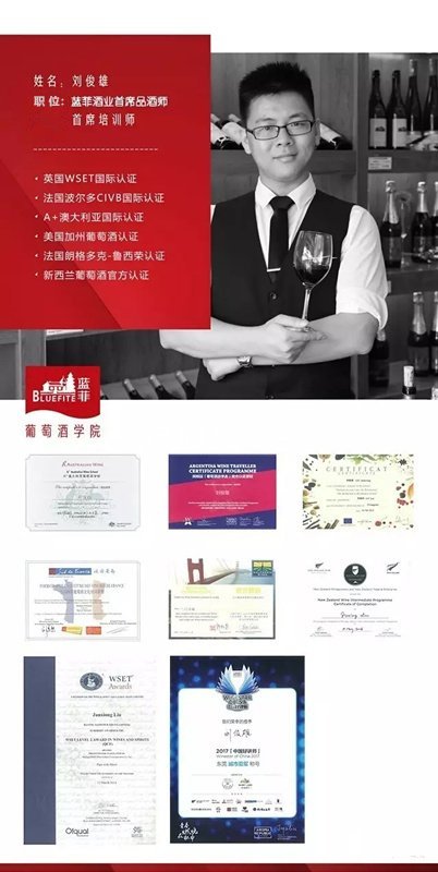 隆重的揭牌儀式結(jié)束后,藍(lán)菲學(xué)院迎來(lái)了首堂葡萄酒培訓(xùn)體驗(yàn)課,課程主講是藍(lán)菲酒業(yè)首席品酒師劉俊雄先生。劉俊雄是藍(lán)菲酒業(yè)高薪聘請(qǐng)的一位才情卓越的品酒師,專(zhuān)注公司葡萄酒文化體系的建設(shè)與文化傳播。他授課特點(diǎn)風(fēng)趣幽默,善于與學(xué)員互動(dòng),能夠在課堂上以潤(rùn)物細(xì)無(wú)聲的方式將葡萄酒文化、知識(shí)植入學(xué)員腦海。體驗(yàn)課上,劉俊雄對(duì)葡萄酒的認(rèn)知以及授課方式獲得嘉賓們的高度贊譽(yù)。