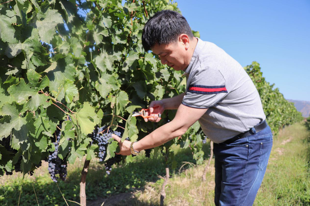 (莊榮昌先生體驗采收葡萄)